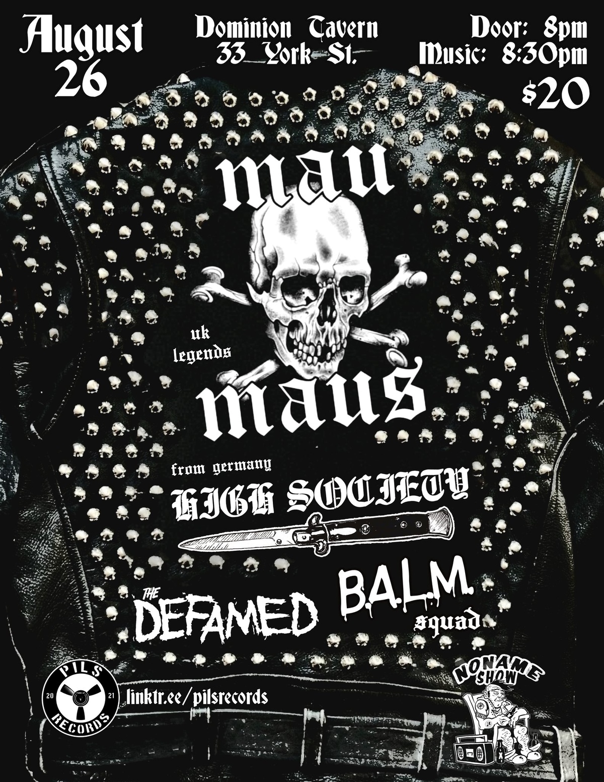 No Name Show is very proud to bring Mau Maus to Canada for the very first time! Pioneers of the Sheffield, UK punk scene since the early 80s, they’ll be playing the classics and celebrating the launch of their brand-new album. Also making their Canadian debut, High Society from Dresden, Germany are heading to Ottawa to get you moving with their melodic street punk.