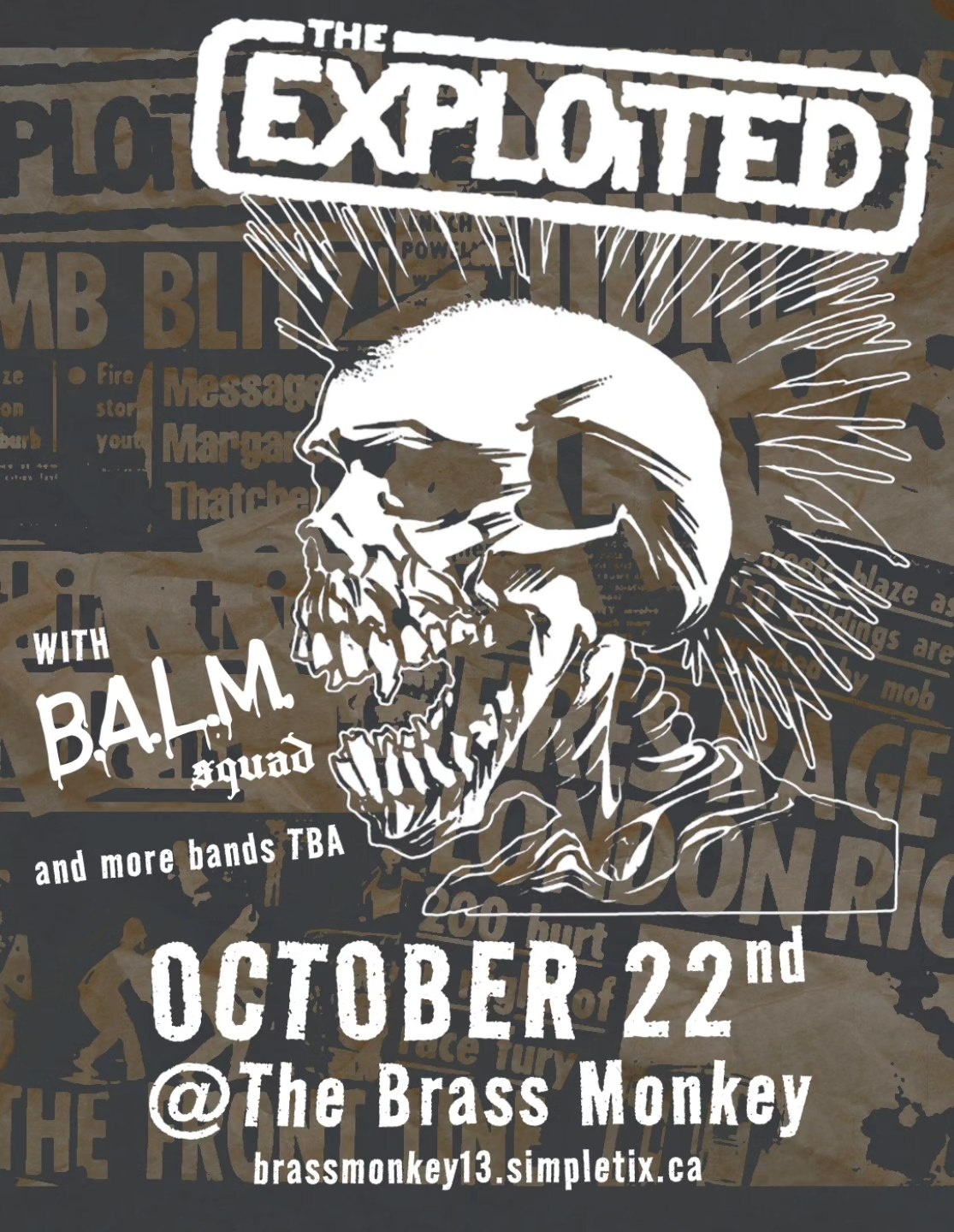 The Exploited, Balm Squad + TBA @ the Brass Monkey - Two Shows Oct. 22 and 24